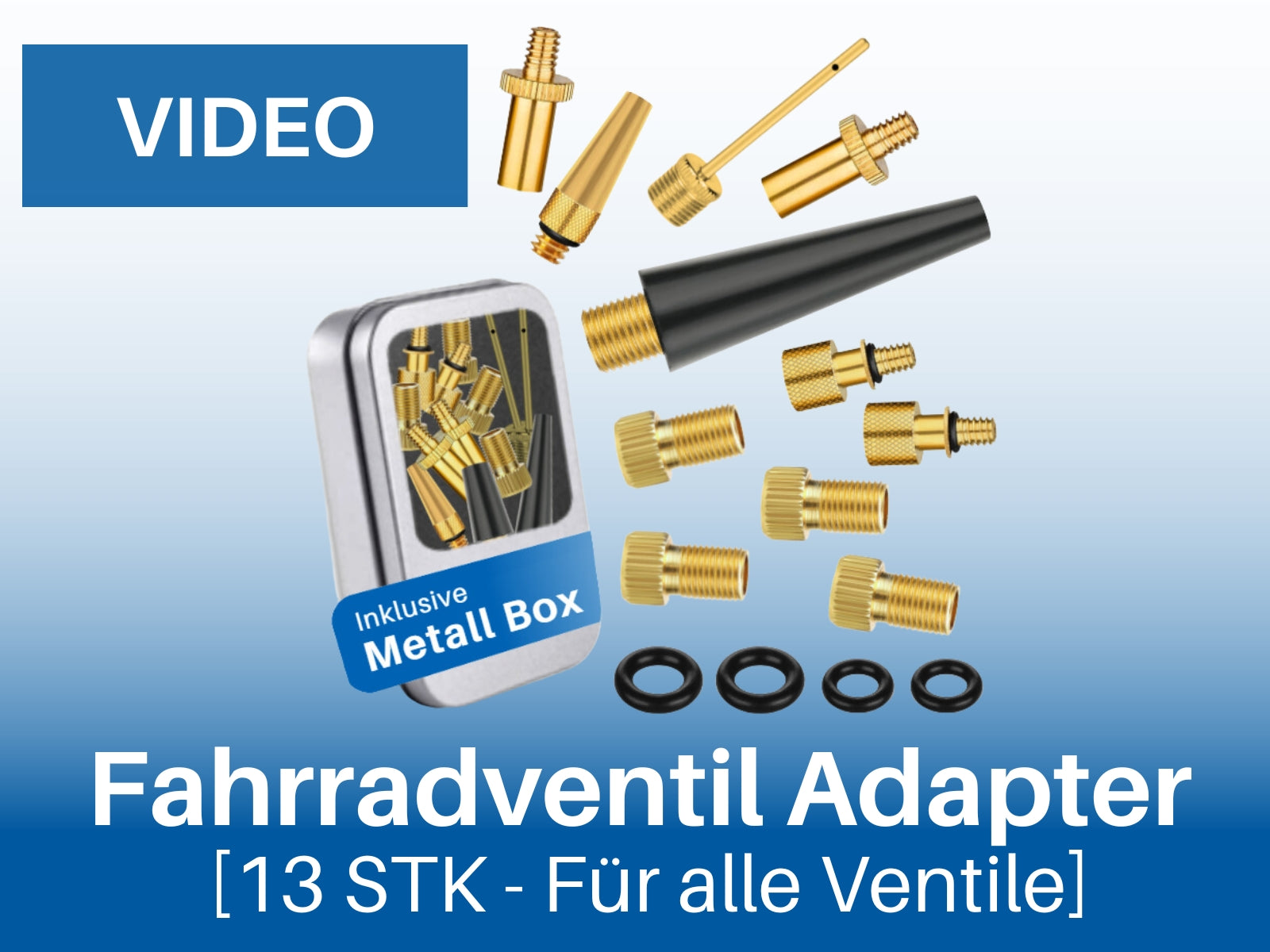 Das Set deckt alle Fahrradventil Arten ab. Egal ob französisches-, Auto- oder Fahrradventil.